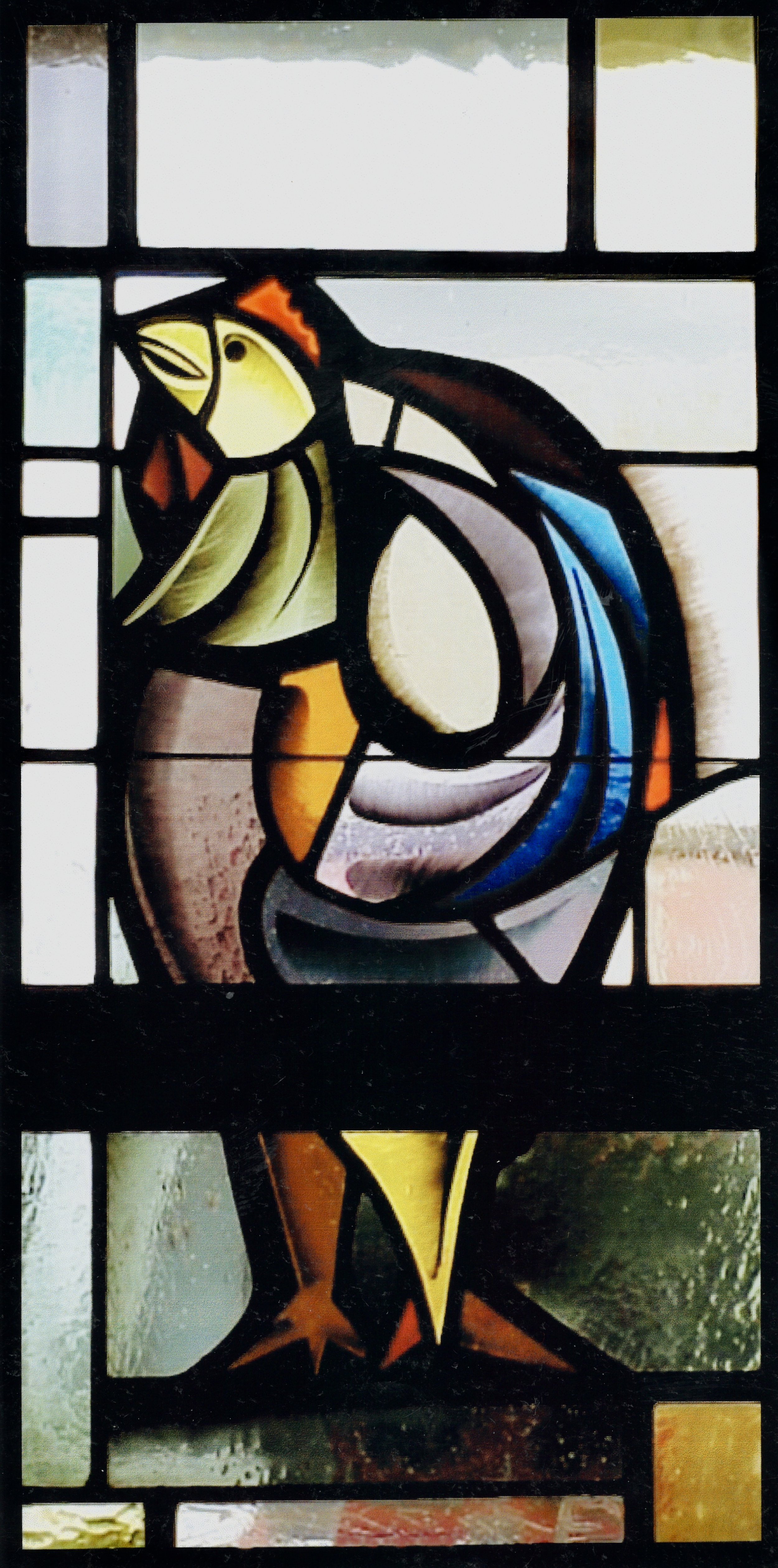 The Cock often represents St. Peter, symbolizing Peter's denial of Christ and repentance. The cock also symbolizes Christ's Passion (John 13:38) and is connected to watchfulness and vigilance because it crows early in the morning.