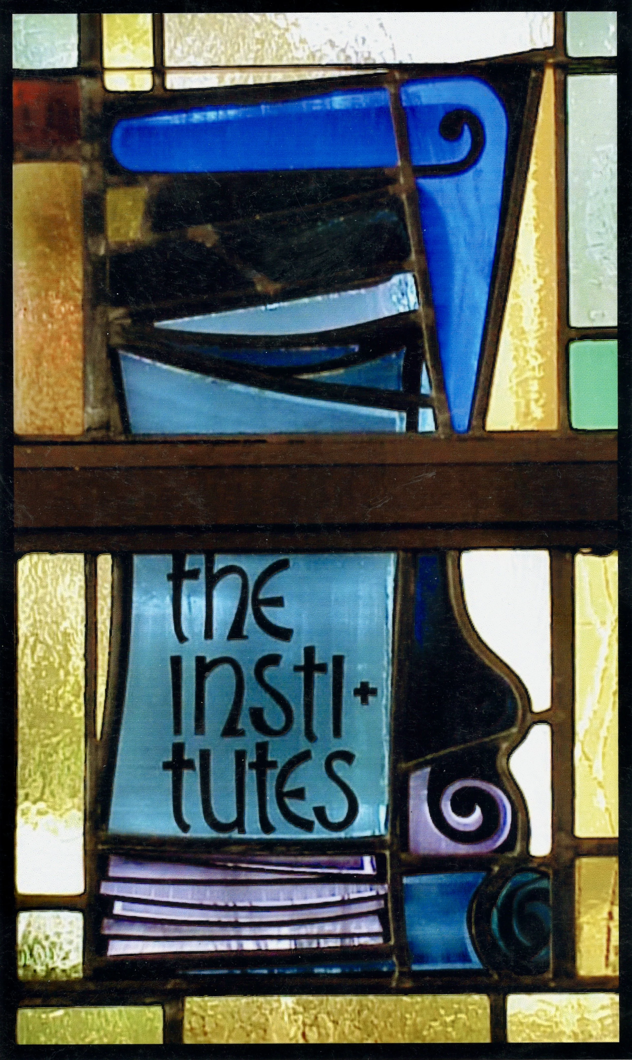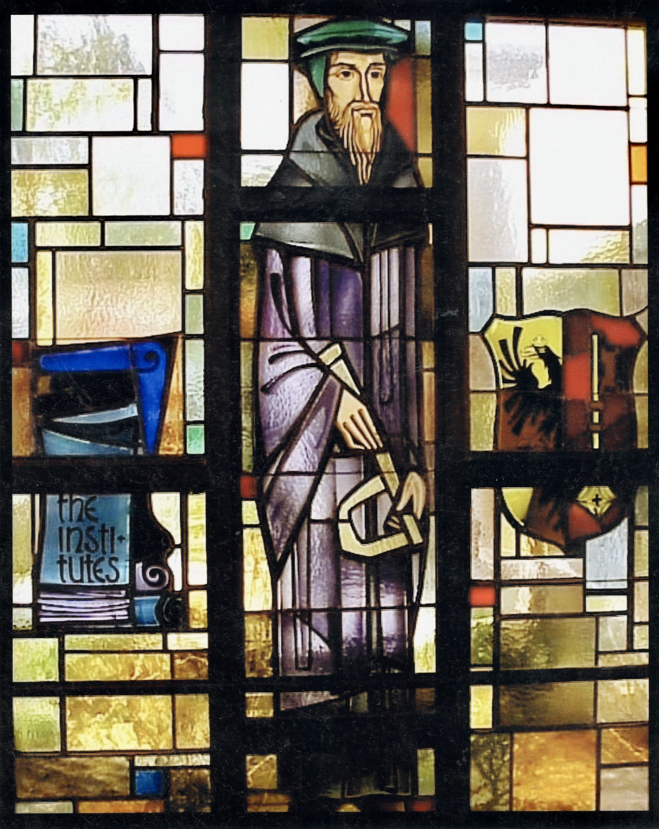 Calvin’s best-known work was Institutes of the Christian Religion, commonly referred to—as in this window—simply as The Institutes.