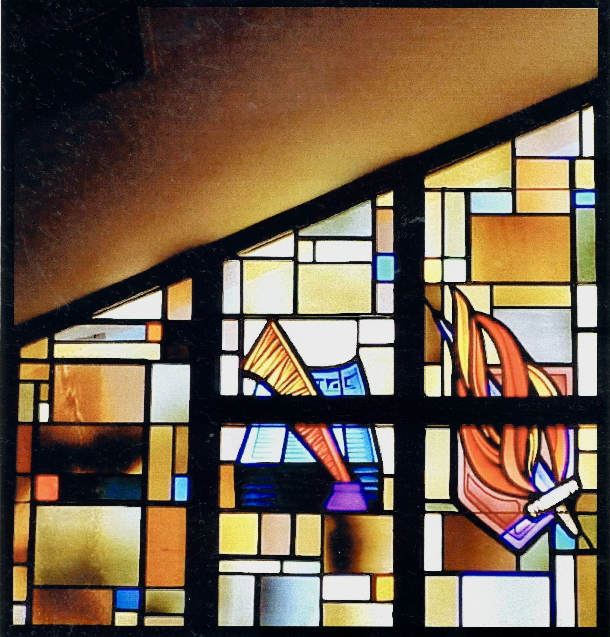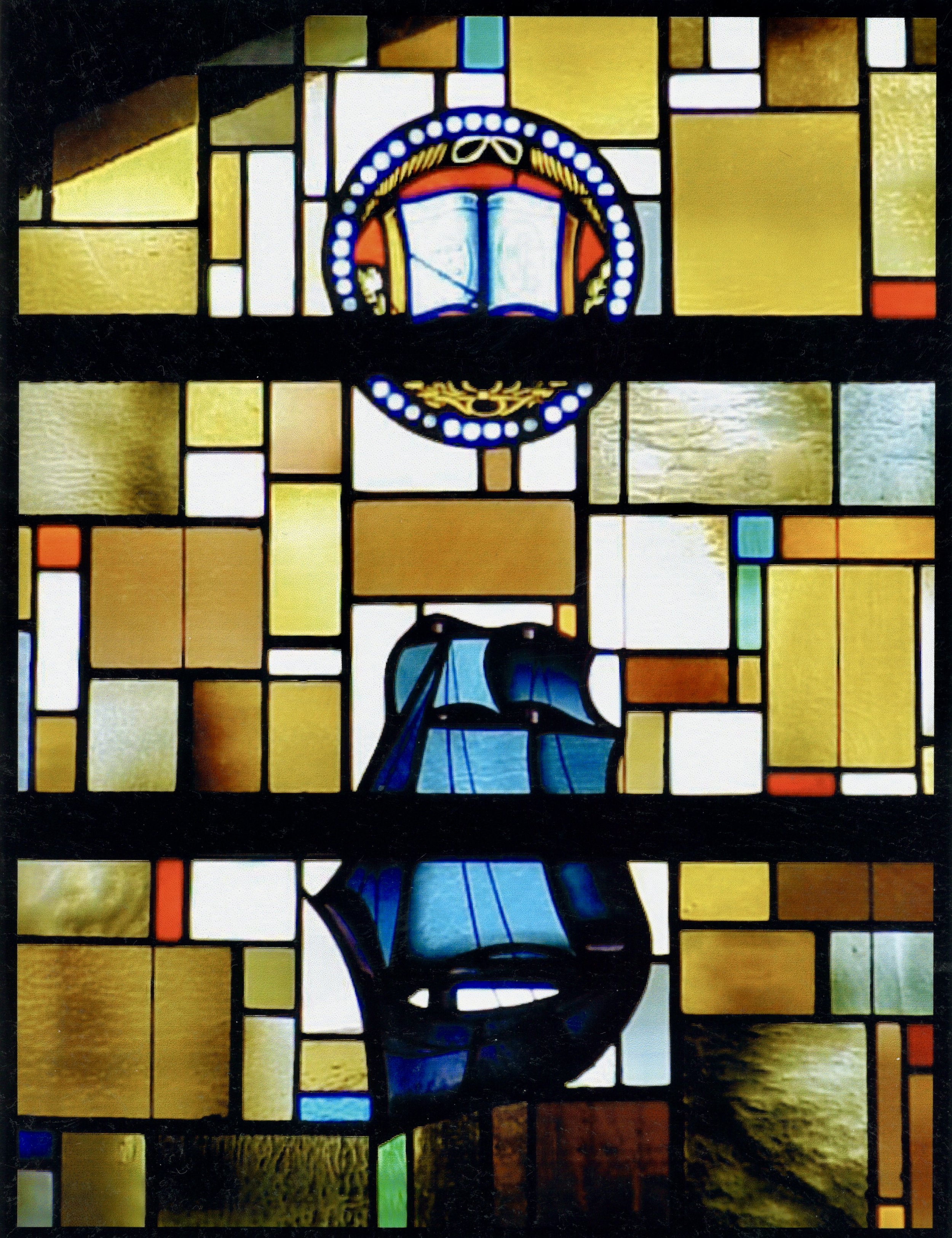 The Seal of the Presbyterian Church in the USA as it looked when the glass was originally created.